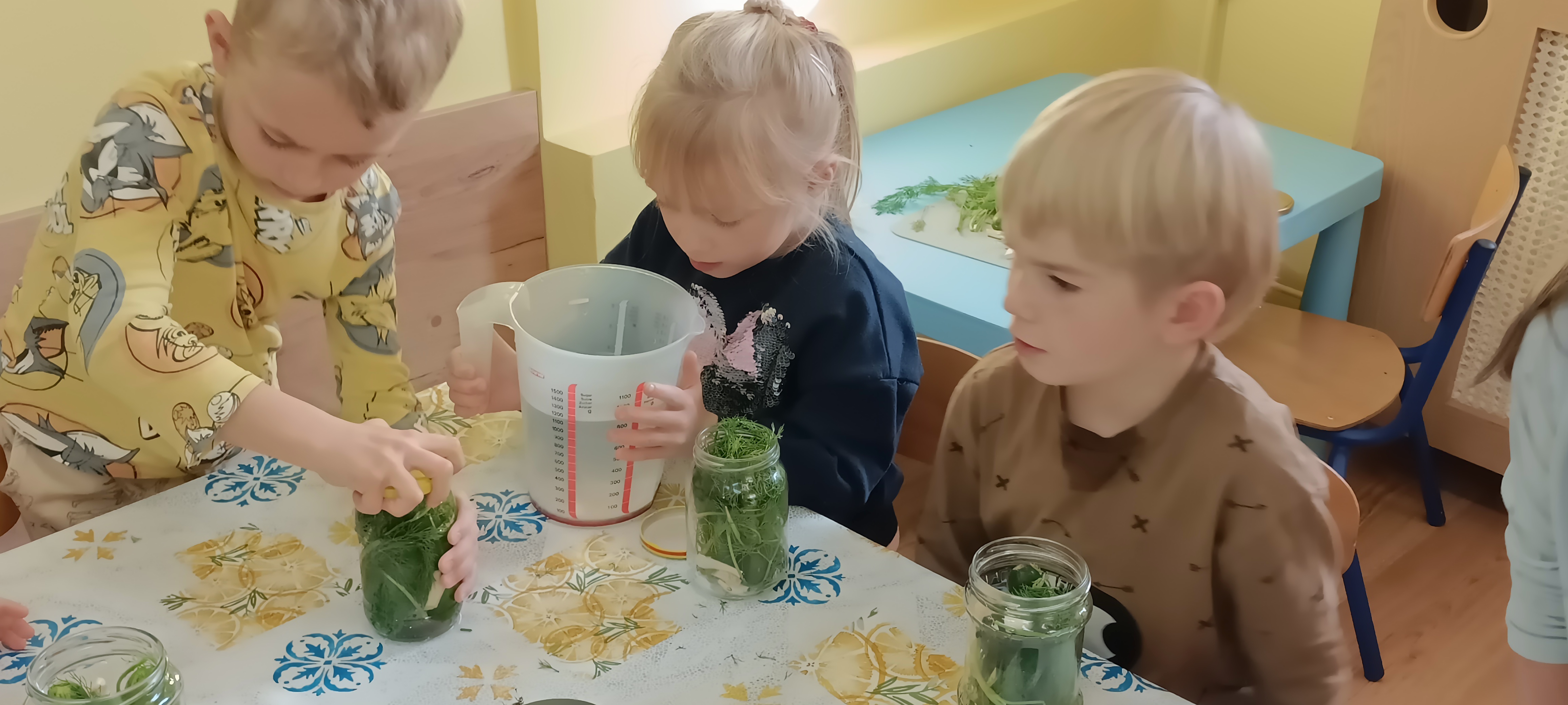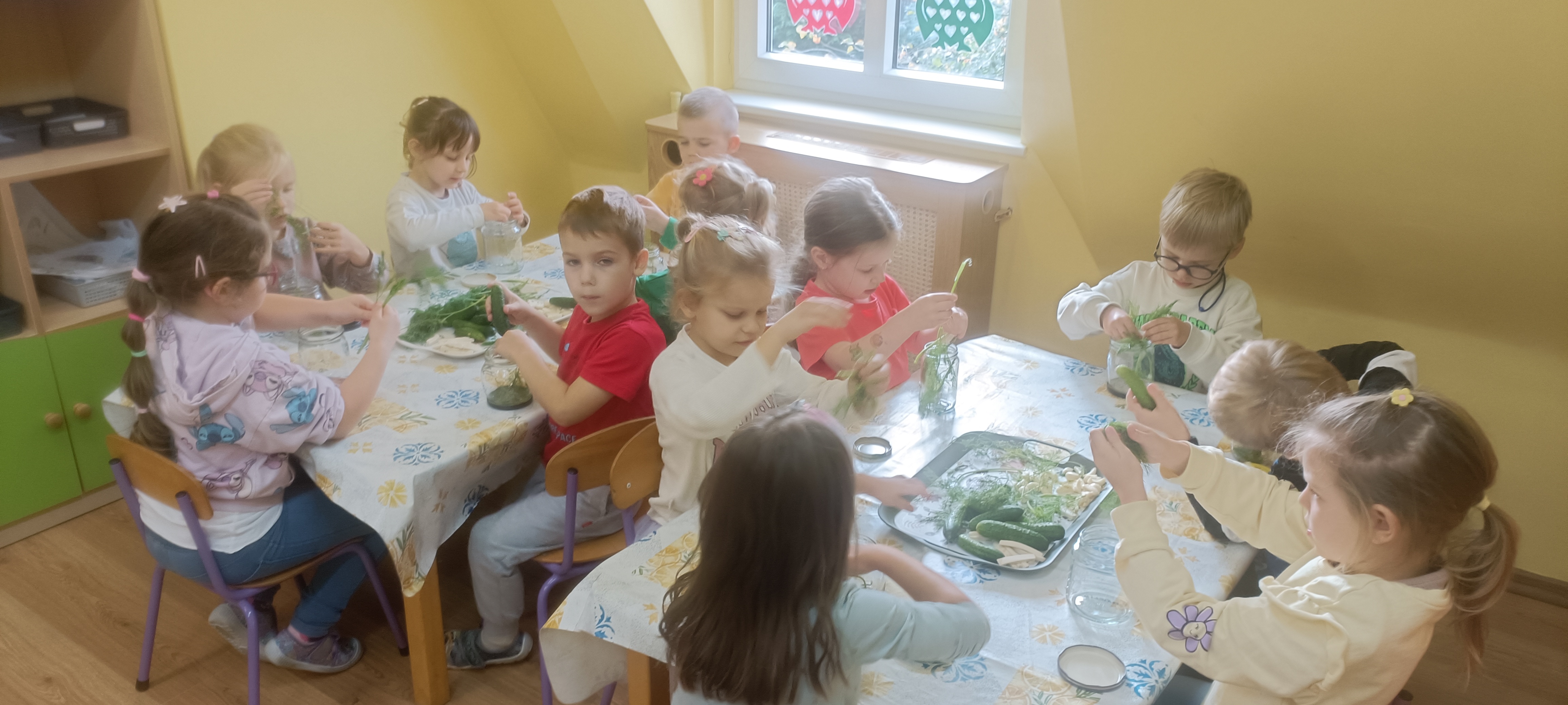 Podczas realizacji tematu przygotowań ludzi i zwierząt do zimy dzieci miały możliwość  wzbogacić swoją wiedzę o sezonowe produkty oraz sposoby ich przechowywania oraz uświadomienie, że zimą ważnym źródłem pożywienia dla ludzi i zwierząt są przygotowane jesienią zapasy. Praktyczne działania, takie jak samodzielne przygotowanie kiszonych ogórków, manipulowanie darami jesieni nie tylko wspierały umiejętności manualne, matematyczne, wzajemnej pomocy, cierpliwości, ale przede wszystkim pozwalały na czerpanie radości i satysfakcji z samodzielnie podjętych działań i ze swoich malych/dużych sukcesów.