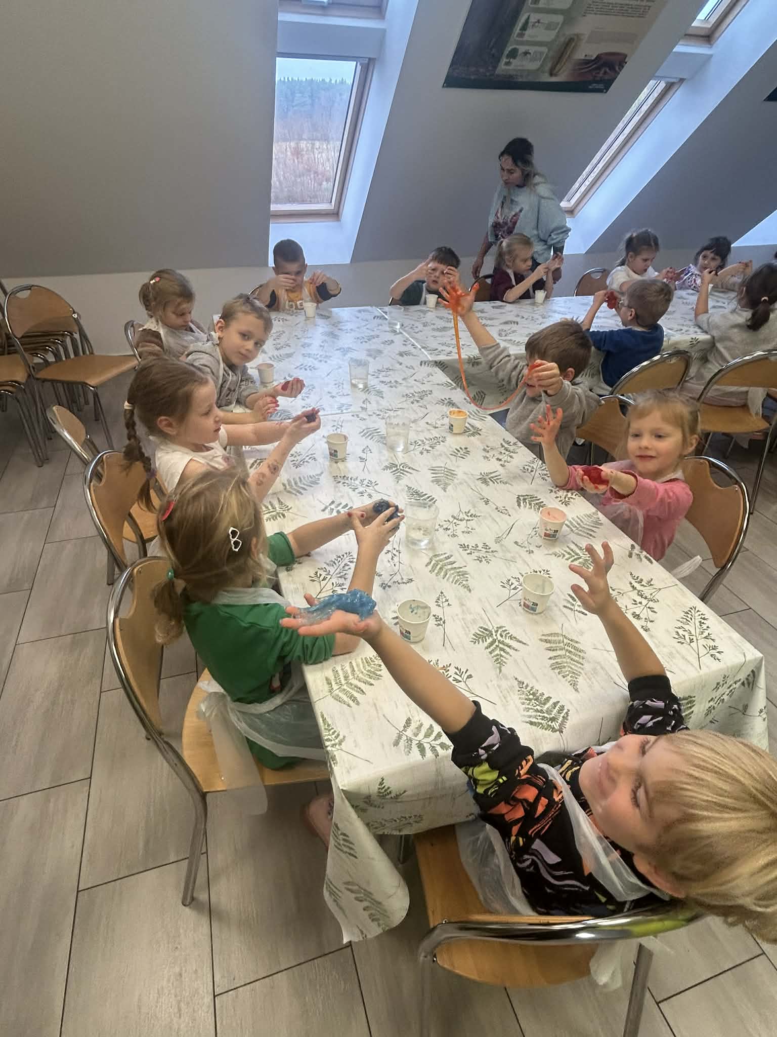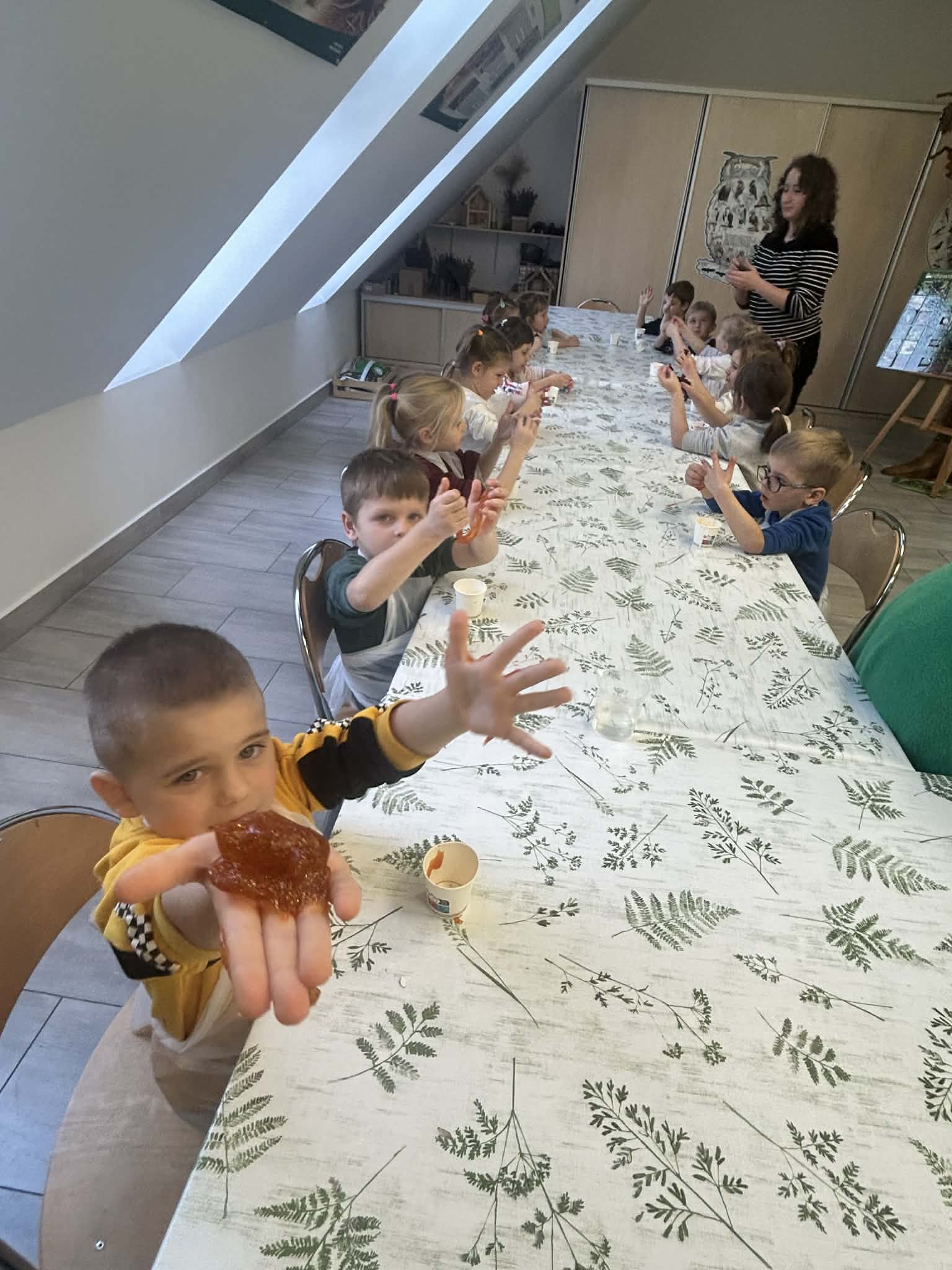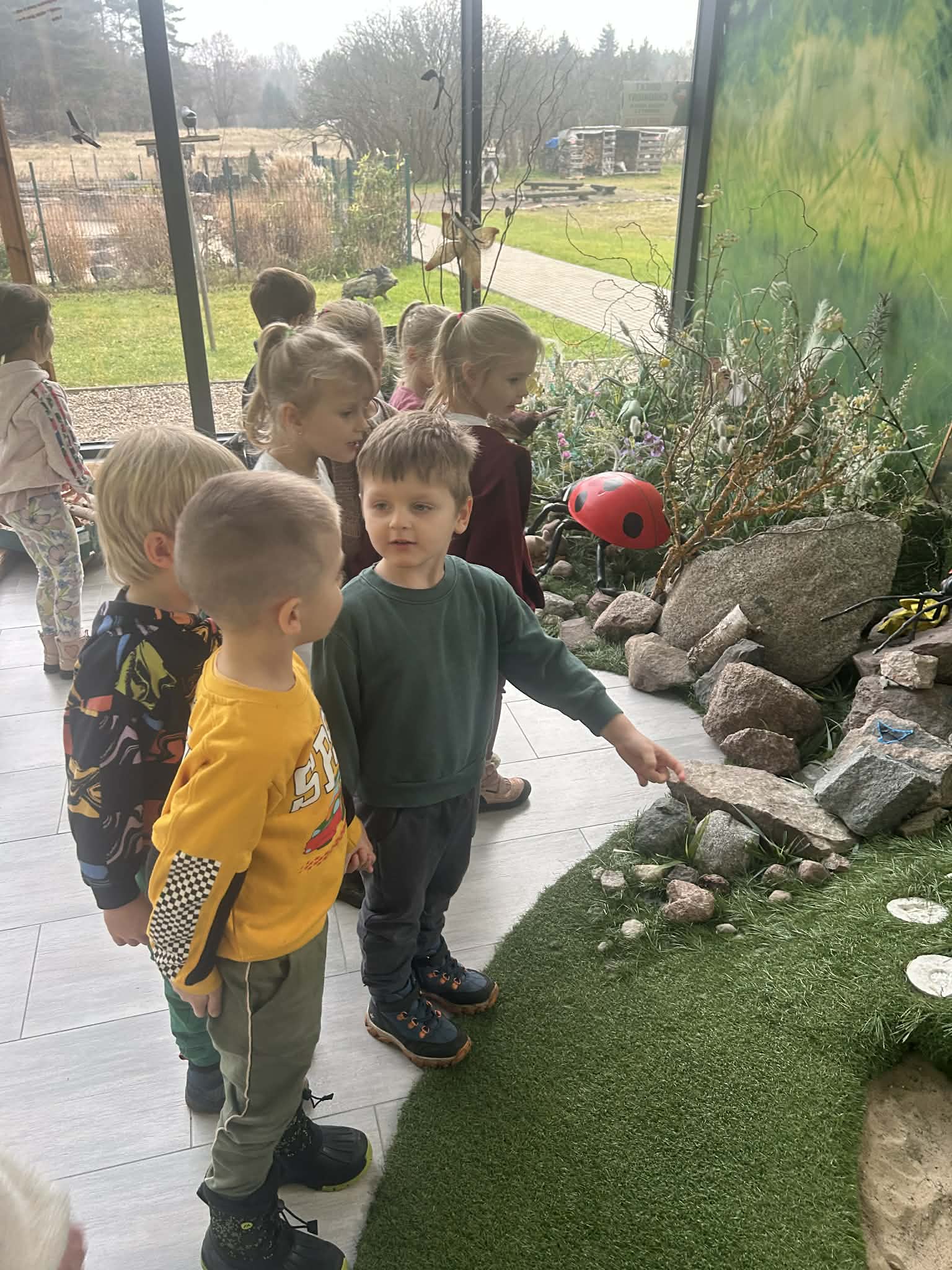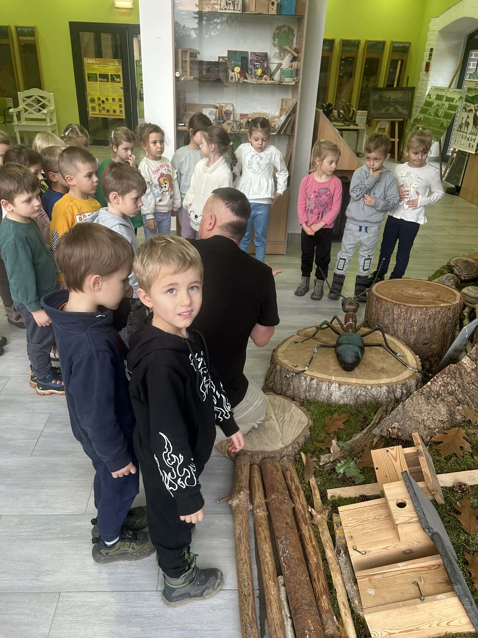 4.12. 2025, Tygryski wzięły udział w wycieczce do Transgranicznego Ośrodka Edukacji Ekologicznej w Zalesiu. Dzieci uczestniczyły w zajęciach przyrodniczych, rozbudzających ciekawość poznawczą dotyczącą budowy ciała owadów i umiejętności rozpoznawania ich na tle innych stworzeń. Na koniec przedszkolaki uczestniczyły w warsztatach przyrodniczych, gdzie samodzielnie wykonały slime. Zabawa ta, przybliżyła dzieciom świat eksperymentów chemicznych oraz wyzwalała radość, sprzyjając rozwojowi sensoryczne mu.